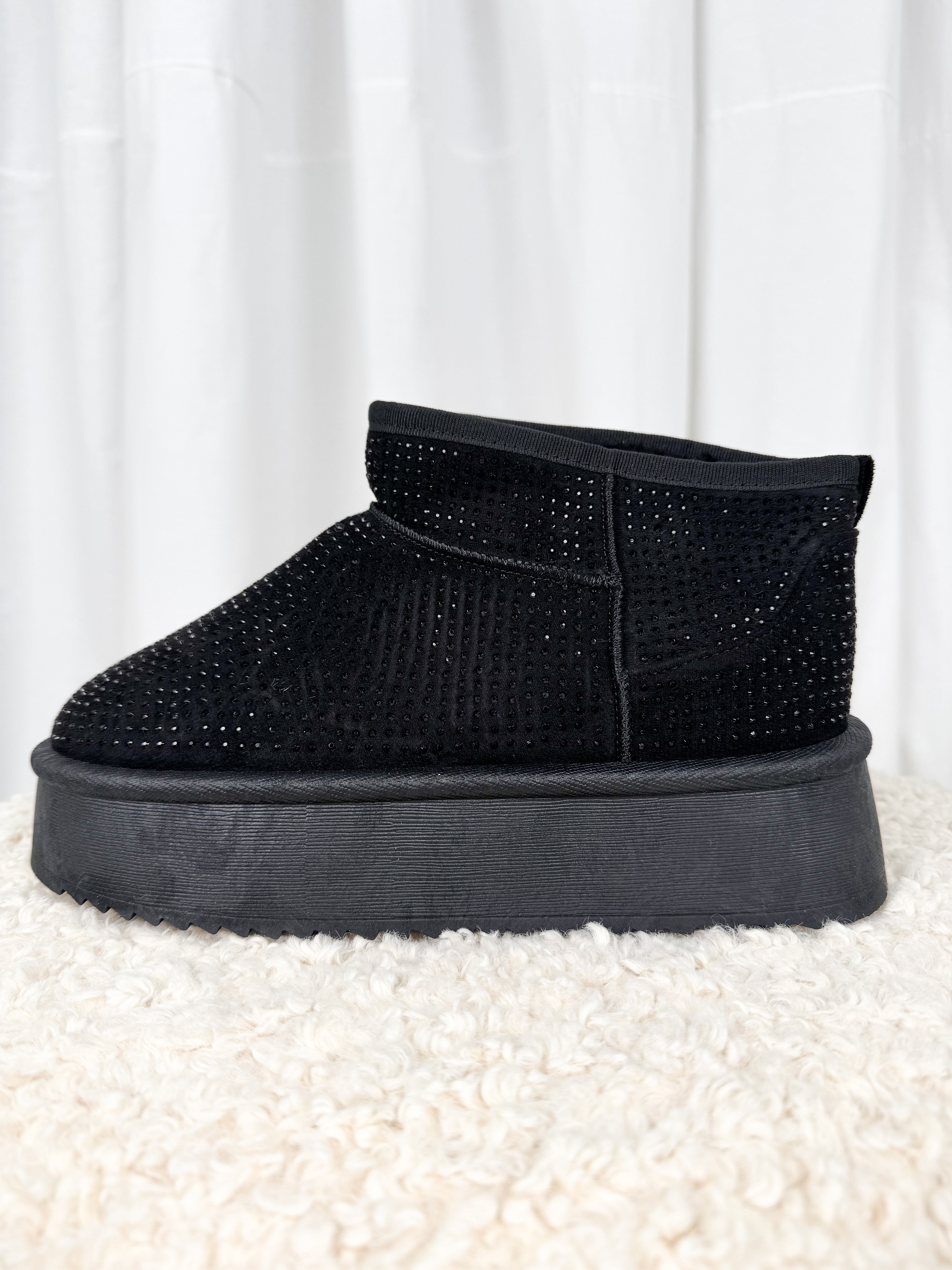 Chic et cosy, cette paire de chaussures allie parfaitement douceur, chaleur et brillance. Son design noir intemporel est rehaussé de strass scintillants qui apportent une touche glamour tout en restant faciles à porter au quotidien. Une paire coup de cœur qui illumine instantanément vos looks d'hiver.