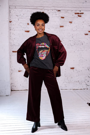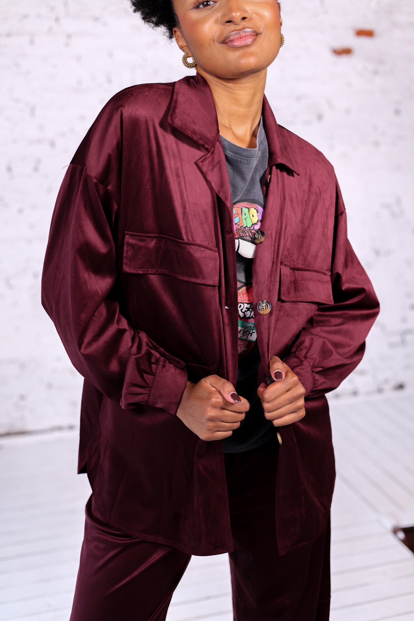 On adore la porter en coordonné avec le pantalon assorti pour un ensemble bordeaux ultra tendance, ou sur un t-shirt imprimé et un jean noir pour un look plus décontracté.