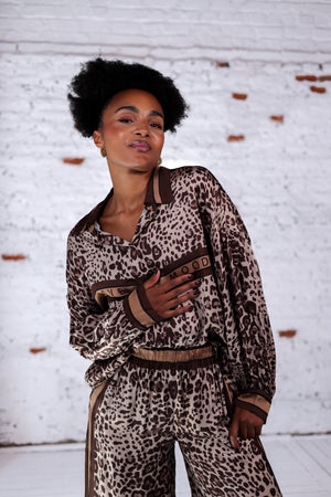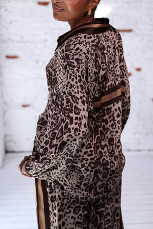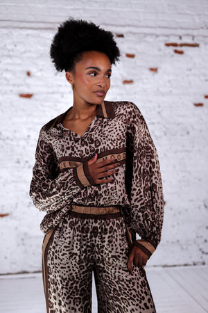 - Chemise fluide imprimée léopard dans les tons bruns et beige