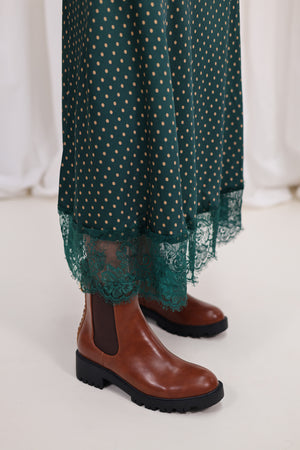 Jupe “Pois de Satin Vert” – Féminité, Fluidité & Élégance