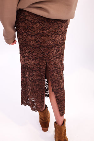 Féminine, élégante et pleine de caractère, cette jupe longue en dentelle texturée apporte une allure raffinée à toutes vos tenues. Son motif floral ton sur ton crée un effet visuel riche et sophistiqué, tandis que sa coupe droite allonge la silhouette avec beaucoup d'élégance.