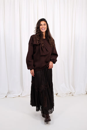 Sa dentelle chocolat apporte douceur et chic, tout en restant très portable au quotidien.