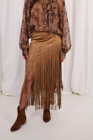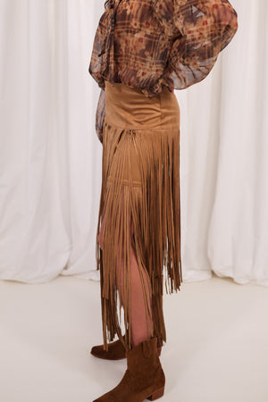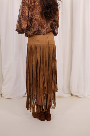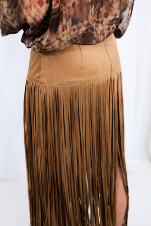 Jupe en faux daim à franges