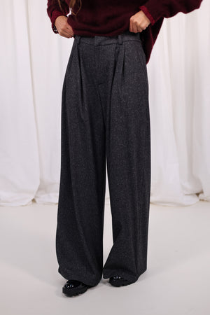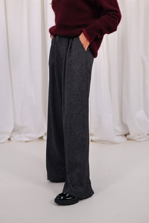 Place à la structure avec ce pantalon fluide gris anthracite, pensé pour allonger et moderniser la silhouette.