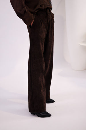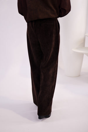 Pantalon Velours Ras – Chocolat Profond, Élégant & Ultra Confort