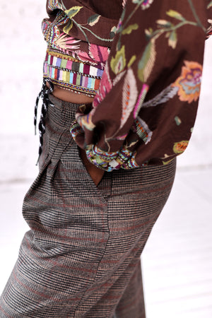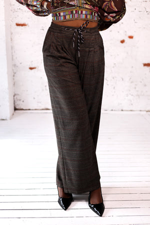 Un pantalon à carreaux élégant et confortable, revisité dans une coupe fluide et moderne.