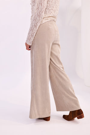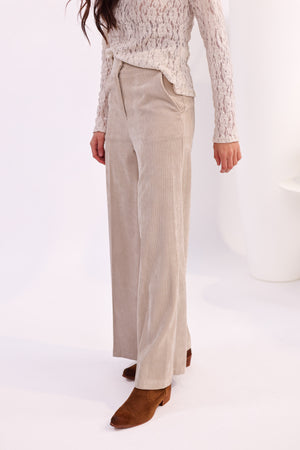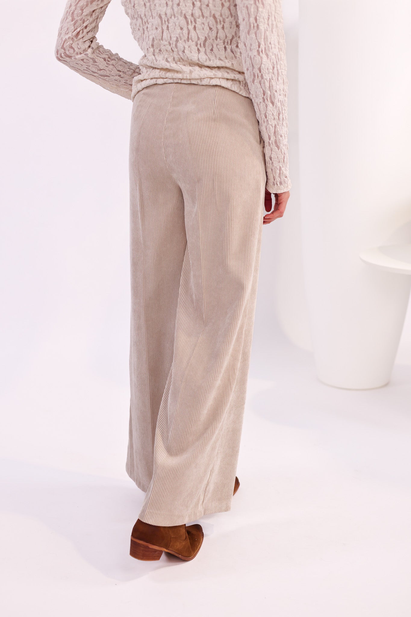 Découvrez ce magnifique pantalon en velours côtelé au tombé fluide et élégant. Sa coupe large et sa taille haute allongent la silhouette tout en offrant un confort absolu.