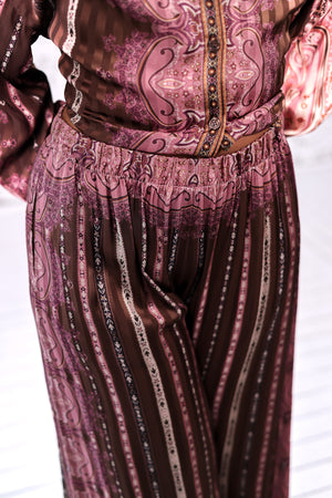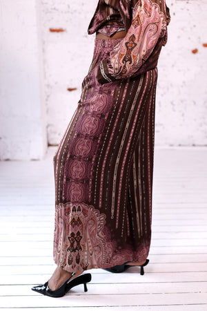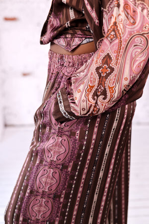 - Pantalon fluide imprimé dans les tons bruns et roses
