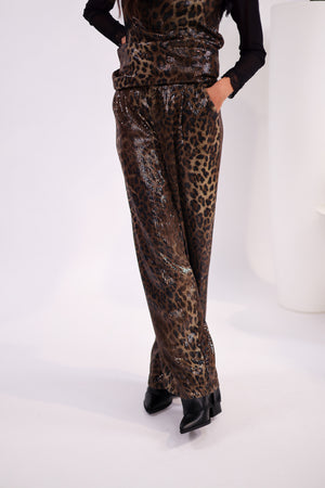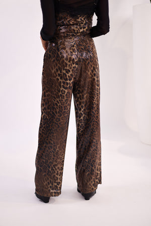 Pantalon à sequins motif léopard – Coupe droite et scintillante