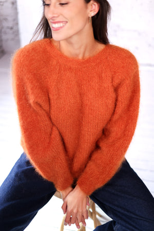 Son coloris orange rouille est une véritable touche de pep’s qui illumine la garde-robe. À porter avec un jean brut pour un look casual, ou avec une jupe noire pour une allure plus sophistiquée.