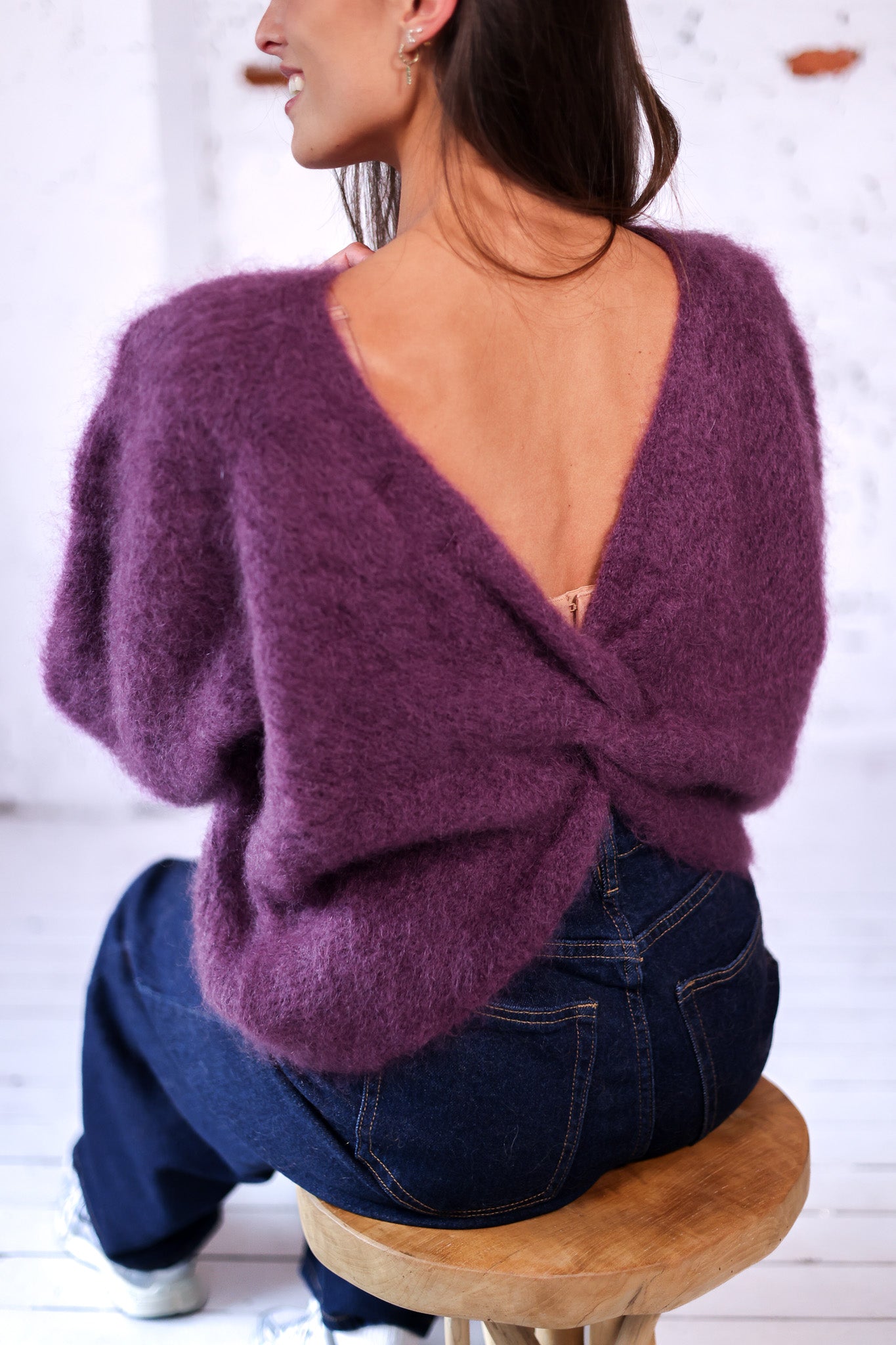 Pull Mohair Twist Dos Violet Profond