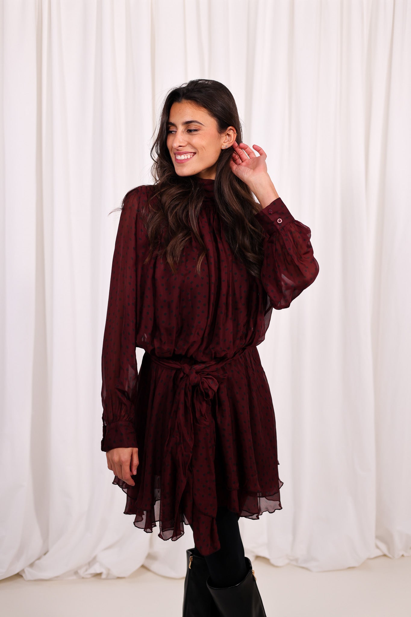 Petit bijou: la robe satiné à pois, fluide, légère et délicatement brillante.