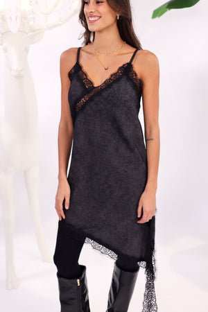 La dentelle délicate crée un subtil jeu de transparence, ajoutant élégance et romantisme à votre look. Polyvalente et facile à associer, cette robe est parfaite pour vos occasions spéciales ou pour un style casual chic au quotidien.