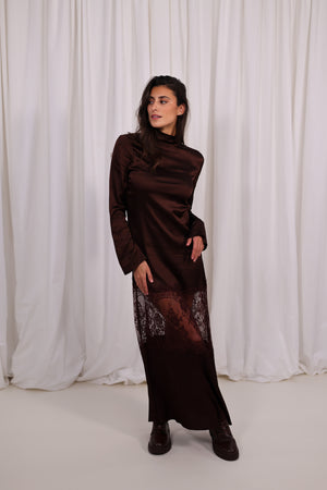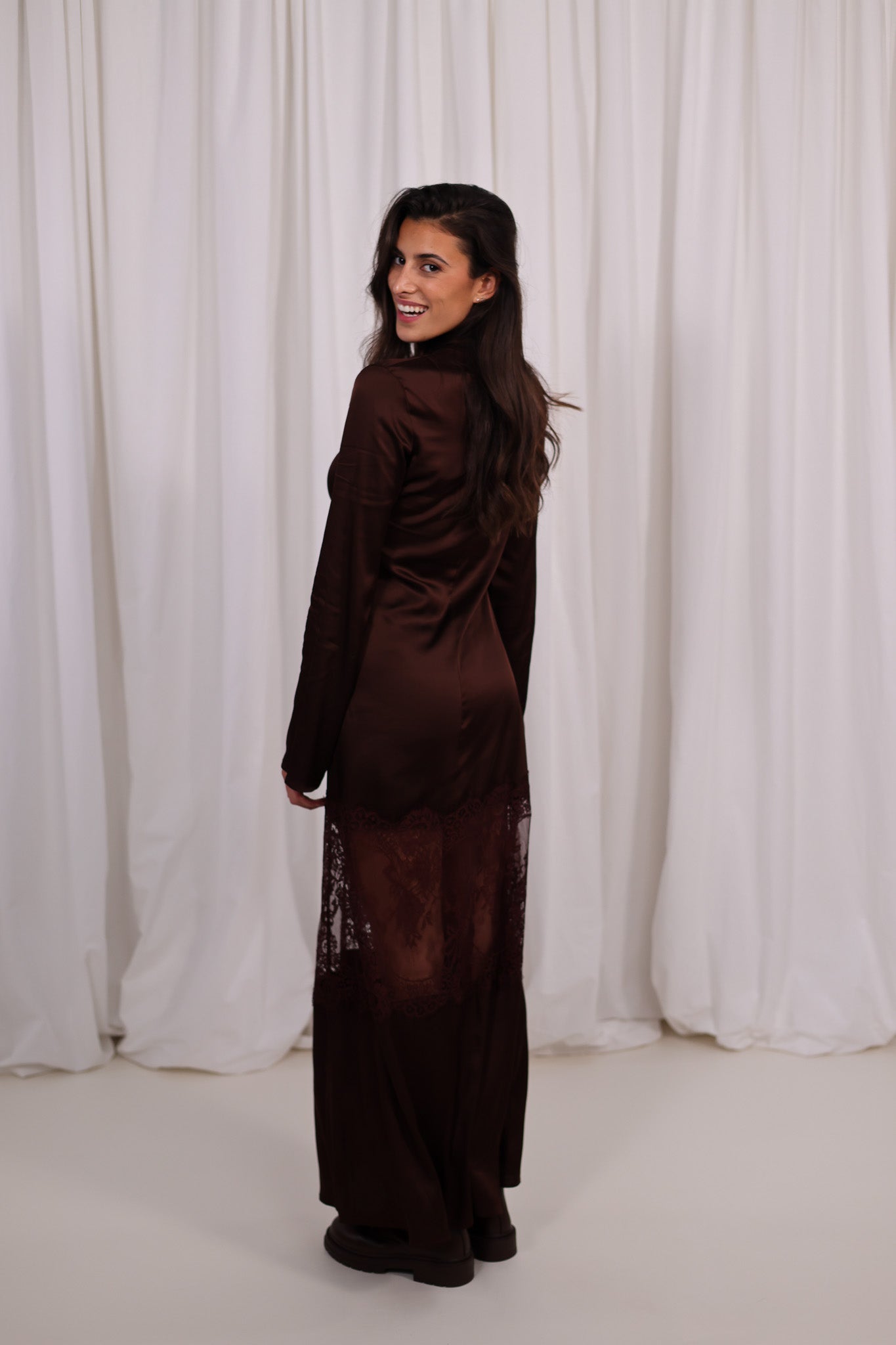 Le haut en satin brillant contraste joliment avec le bas en dentelle transparente, pour un look à la fois raffiné et sensuel sans en faire trop.