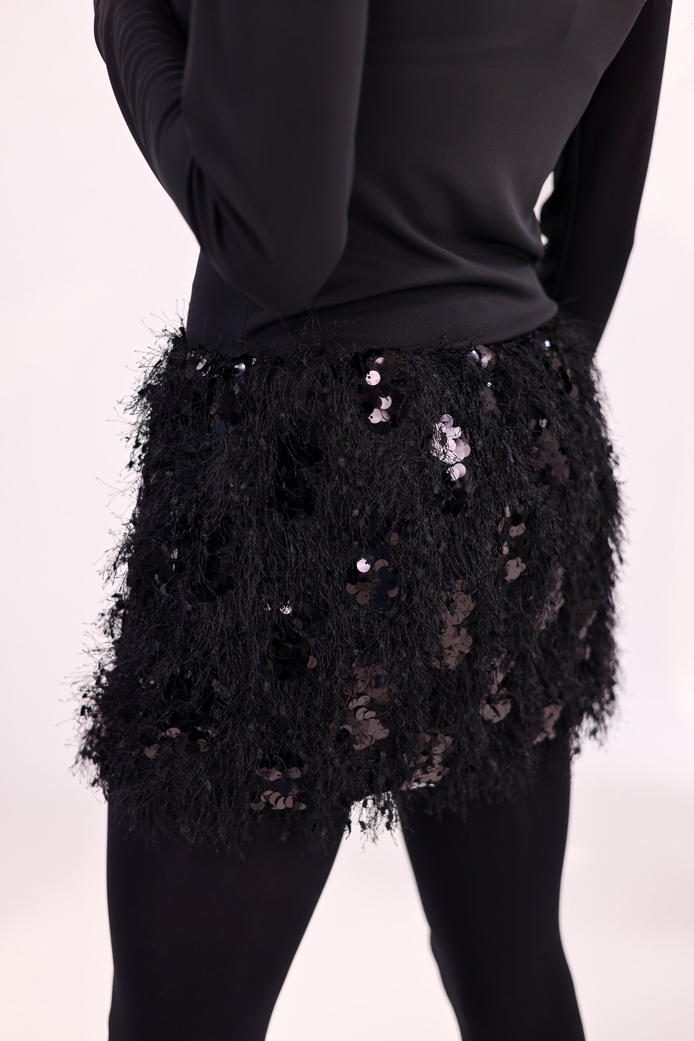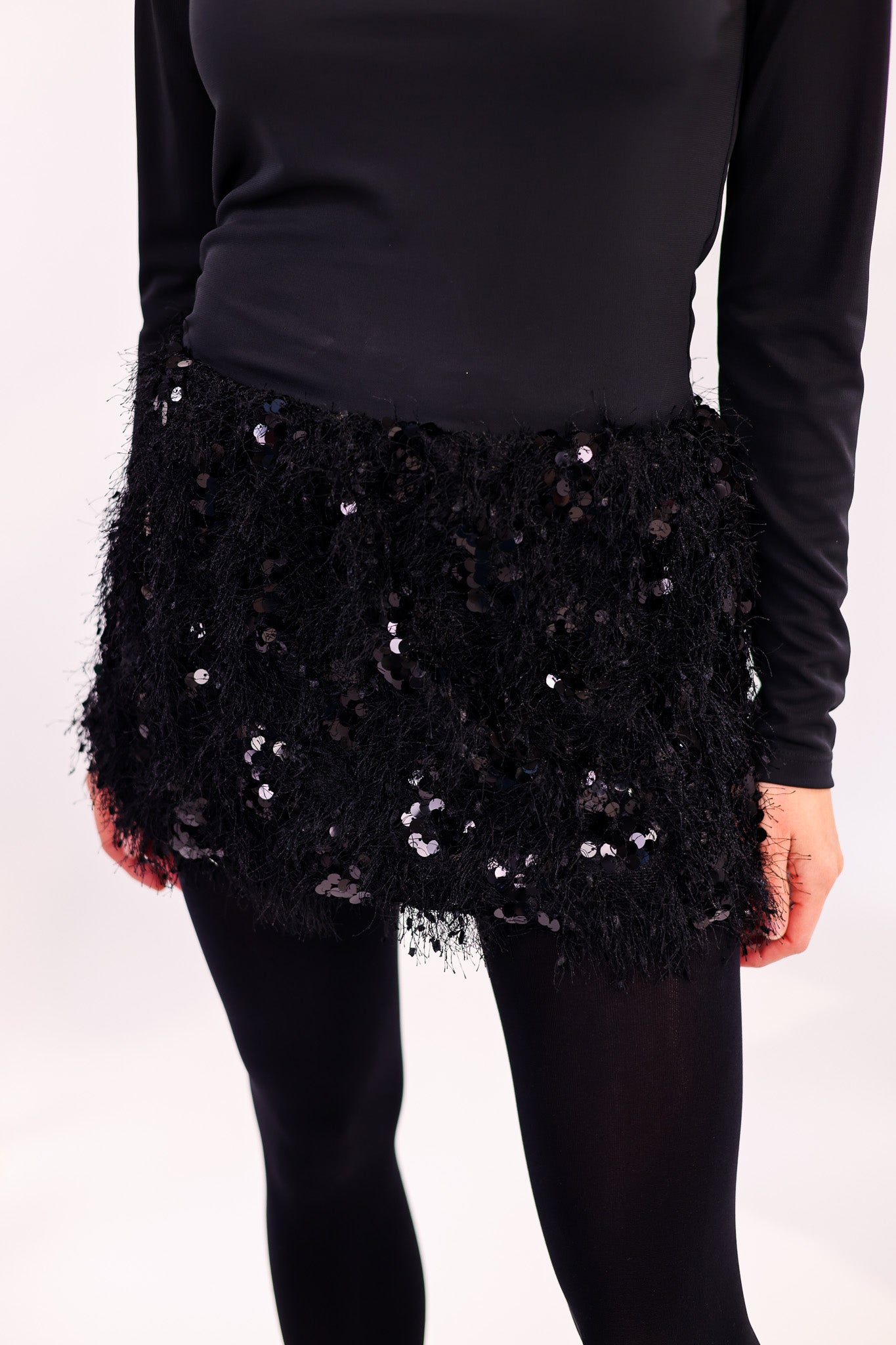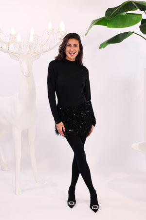 Faites sensation lors de vos soirées avec cette robe courte noire, pensée pour sublimer votre silhouette et apporter une touche de glamour irrésistible. Son tissu fluide 100% polyester offre un tombé élégant, tandis que sa jupe entièrement recouverte de paillettes attire la lumière à chaque mouvement pour un effet scintillant ultra-festif.