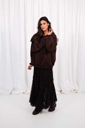 Ce sweat chocolat est la pièce parfaite pour réchauffer vos looks tout en restant stylée.