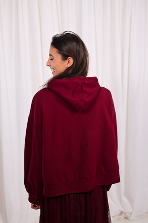 Voici la version bordeaux de ton sweat iconique : une pièce qui combine confort absolu, coupe tendance et couleur ultra désirable.