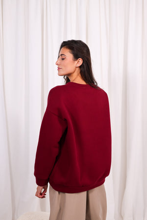 Sweatshirt confortable et tendance, idéal pour la saison. Sa coupe oversize et sa matière souple permettent une grande aisance au porté. Taille unique, il convient facilement jusqu’à un bon 42, voire un petit 44, grâce à son volume ample et à sa belle largeur d’épaules.