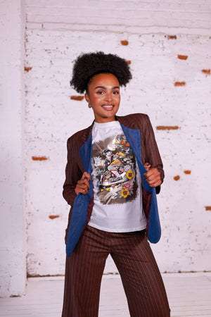 Un t-shirt qui mélange art japonais et culture urbaine, parfait à associer avec un jean, un short en denim ou une jupe pour un look décontracté.