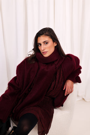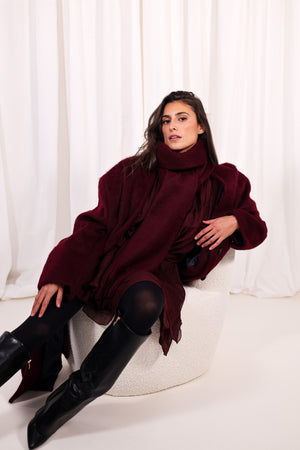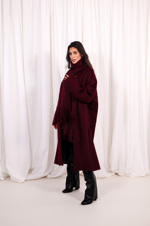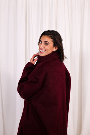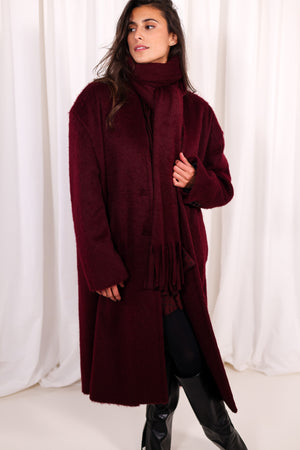 Manteau Bordeaux Oversize à Écharpe Intégrée