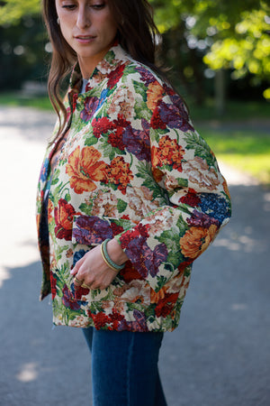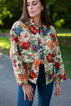 Inspiré des tissus “tapissés”, ce bomber revisite les codes vintage avec modernité. On adore son motif floral multicolore, ultra riche et vibrant, qui réveille instantanément n’importe quel look.