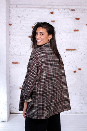 Une veste graphique et tendance qui modernise le classique motif pied-de-poule avec des patchs imprimés au style urbain. Originale et affirmée, elle se porte aussi bien en journée pour dynamiser une tenue simple qu’en soirée pour un look mode assuré.