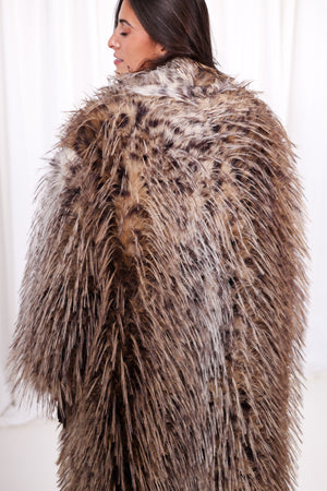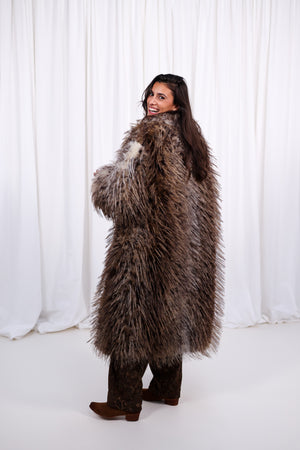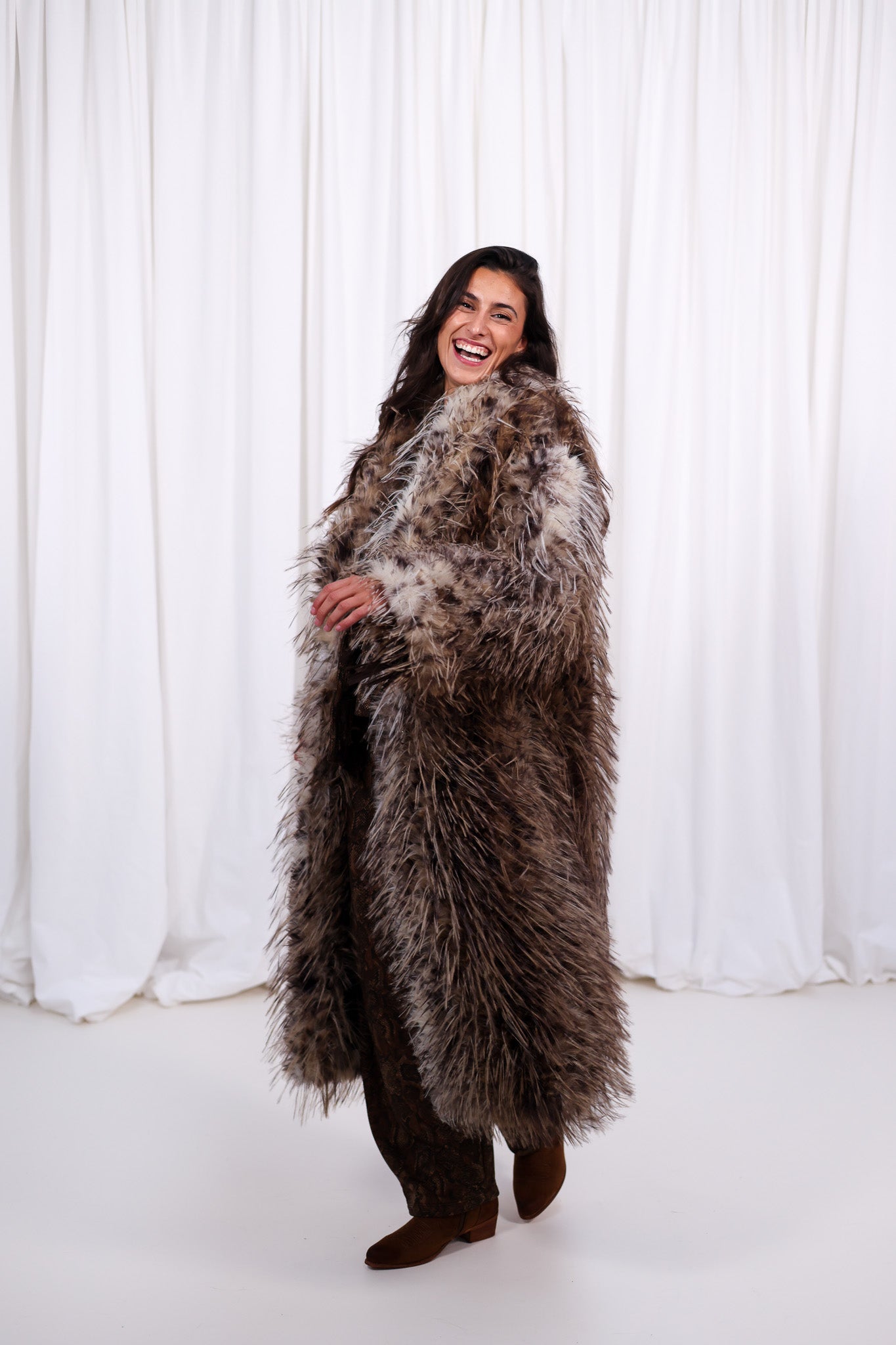 Manteau long en fausse fourrure – Volume, chaleur & style sauvage
