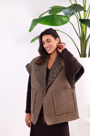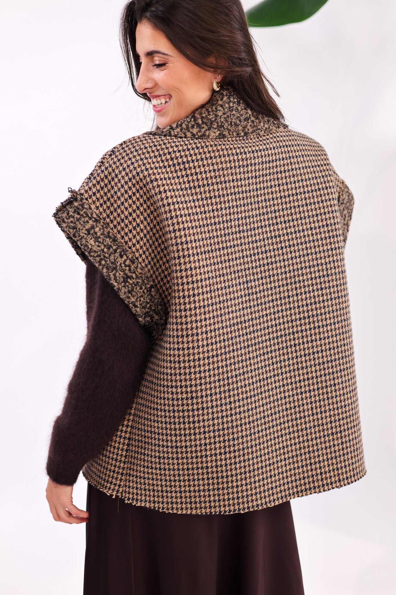 Veste Sans Manches Pied-de-Poule & Bouclette