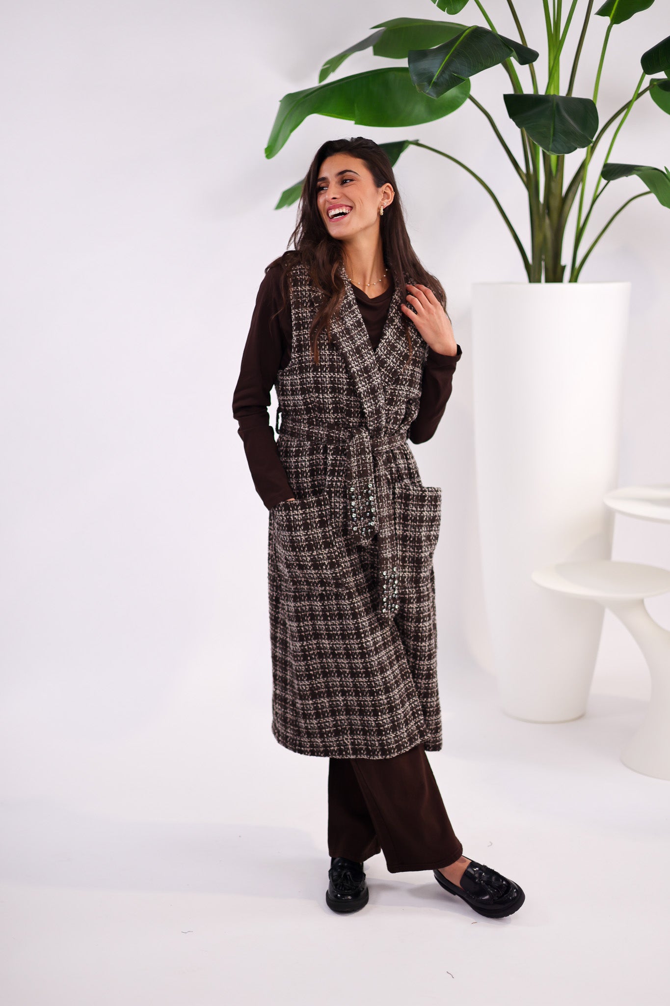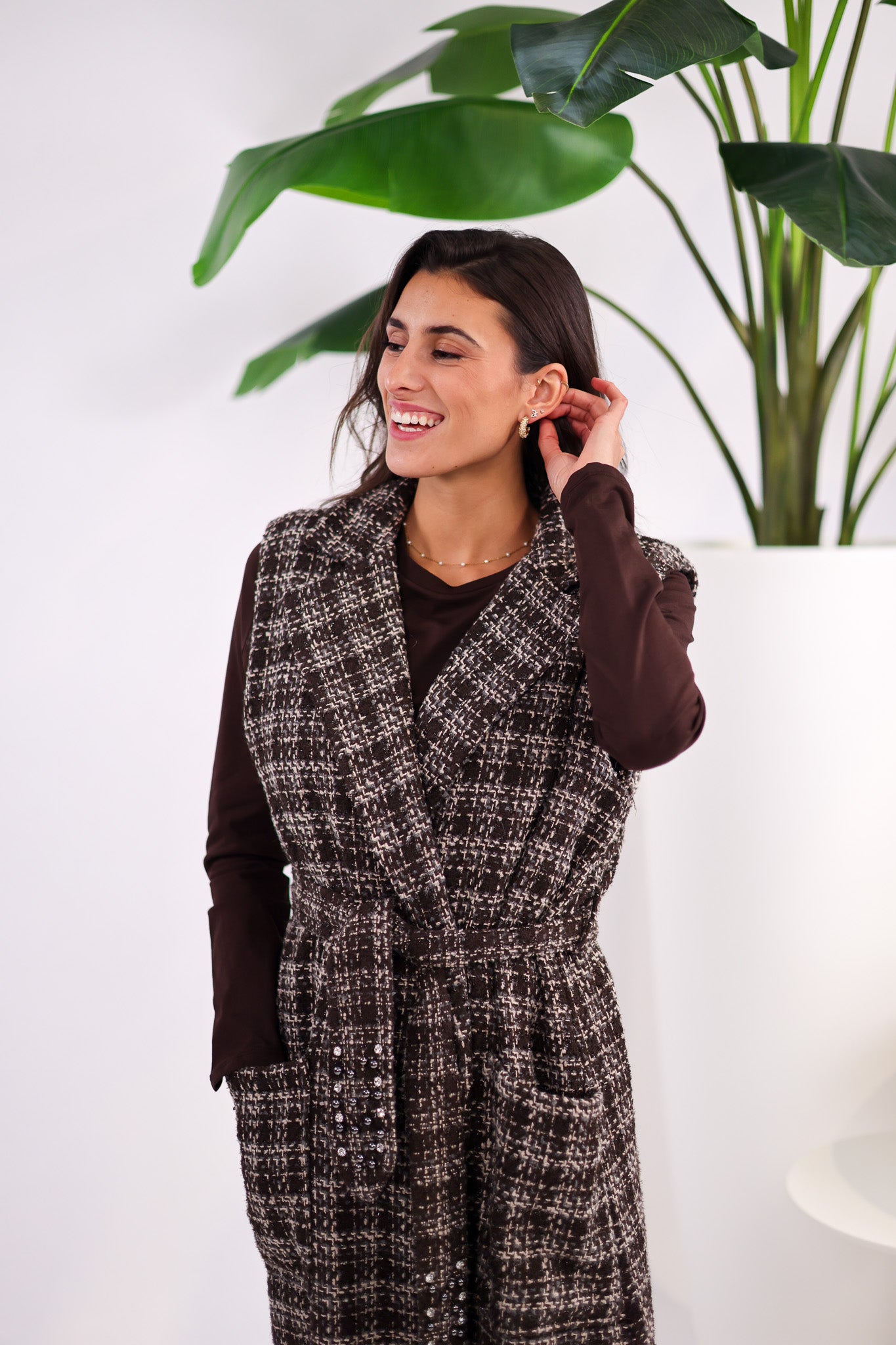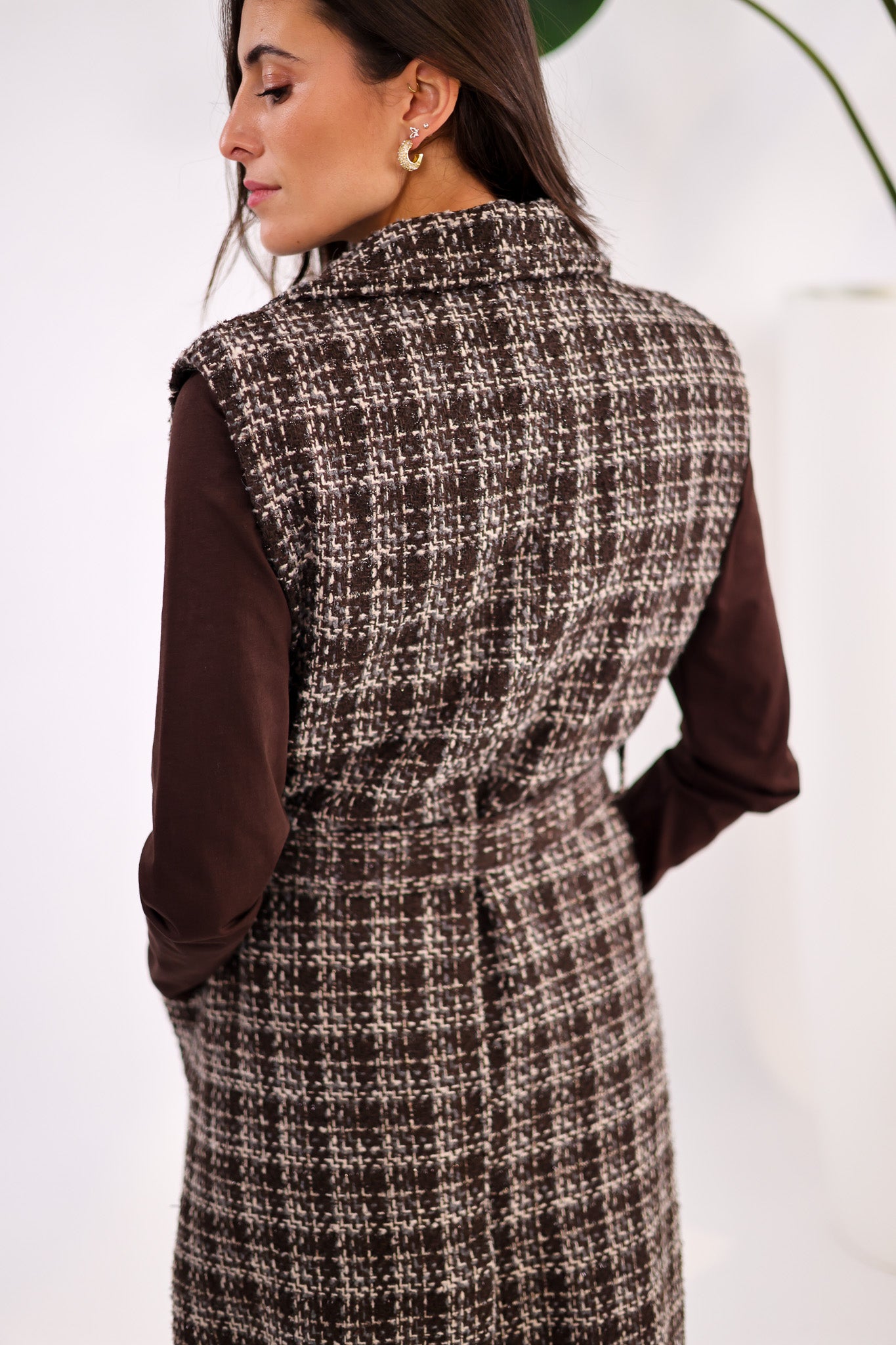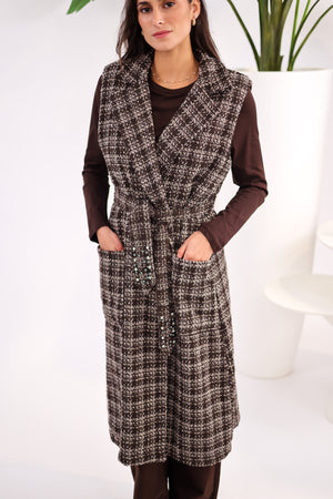 Veste Longue Sans Manches – Effet Tweed