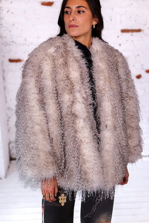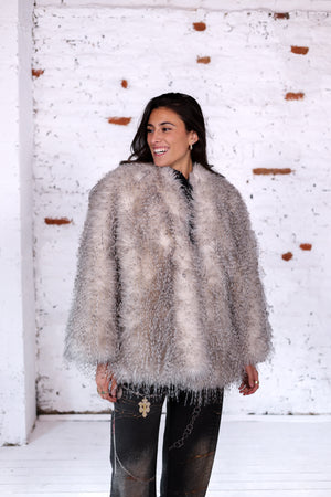 Faites sensation avec ce manteau en fausse fourrure gris texturé, qui combine élégance et extravagance. Sa matière douce et volumineuse apporte chaleur et confort, tout en offrant un look unique et sophistiqué. Une pièce forte qui habille instantanément vos tenues d’hiver.