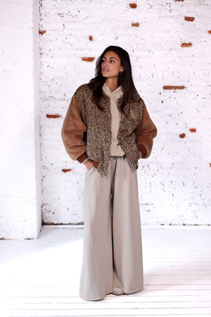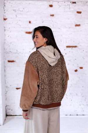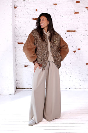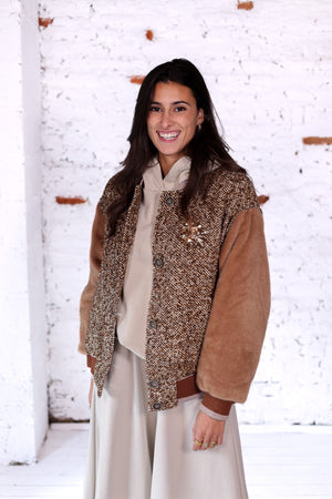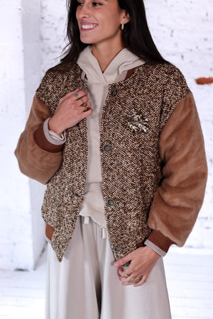 • Veste bicolore avec effet tweed et manches fausse fourrure