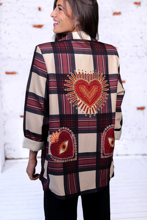 Veste imprimée carreaux & broderies cœur sacré