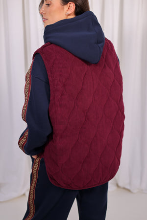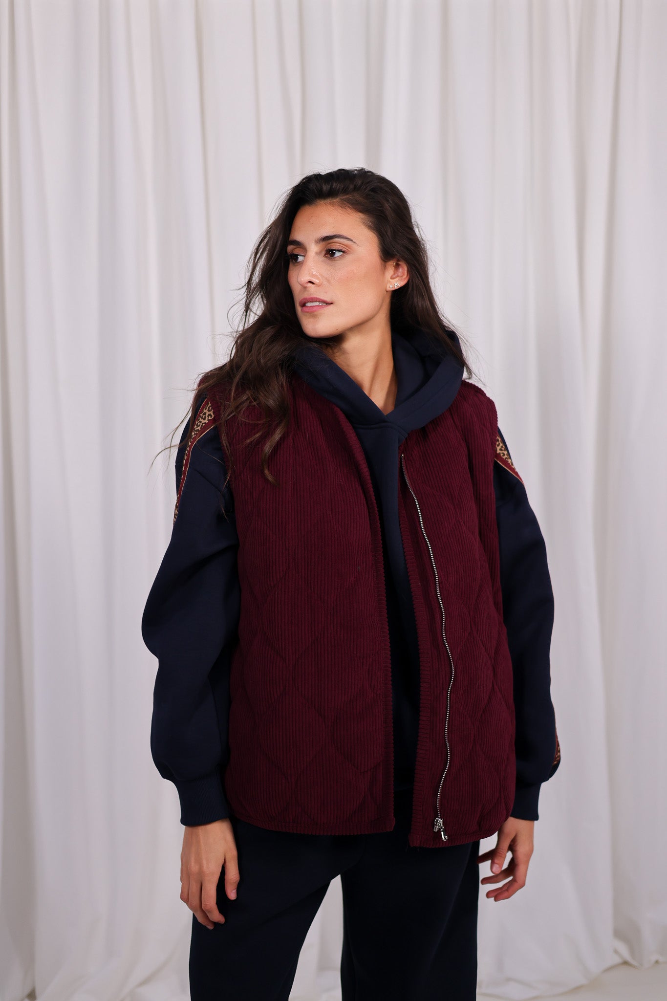 Cette veste sans manches en velours côtelé matelassé apporte immédiatement une touche stylée et cocoon à n’importe quel look.