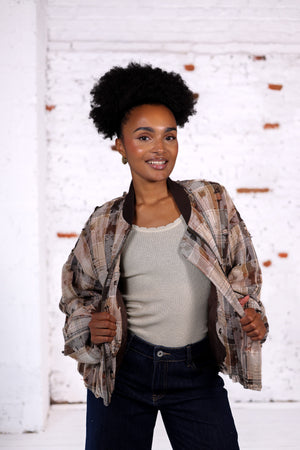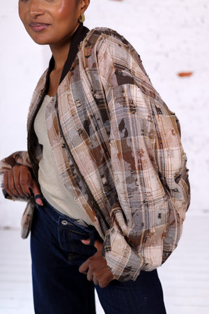 Un bombers unique et tendance, revisité dans une version à carreaux texturés. Sa coupe ample et son style décontracté en font une pièce forte pour vos looks de saison.