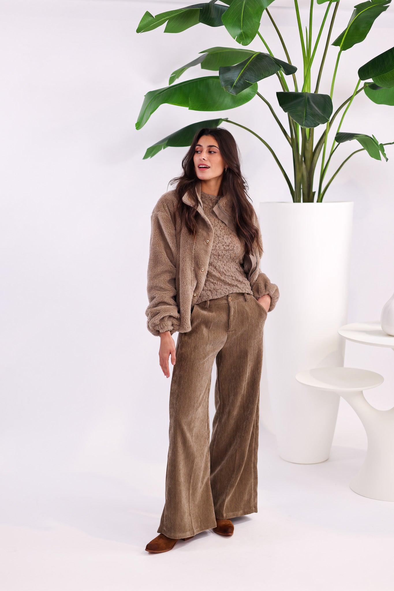 À associer avec un pantalon en velours, un jeans large ou une robe fluide pour un outfit d’hiver irrésistible.
