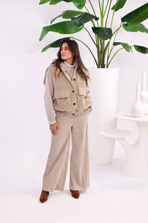 Sa matière texturée façon côtelé lui donne un charme authentique et moderne, tout en restant très facile à associer. La coupe est légèrement oversize, ce qui permet un tombé décontracté et une aisance parfaite : la veste convient ainsi très bien jusqu’à une taille 42/44.