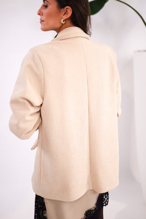 Ce blazer présente une coupe légèrement oversize, très actuelle, qui permet une grande liberté de mouvement et s’adapte parfaitement jusqu’à une taille 44. Facile à porter au quotidien comme en soirée, il apporte immédiatement une touche raffinée.