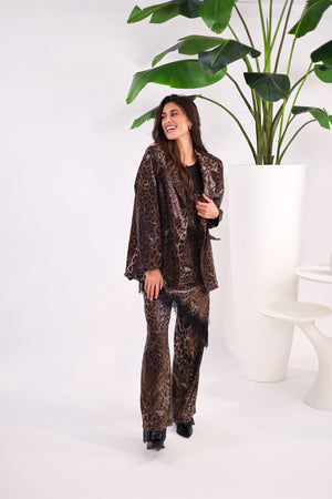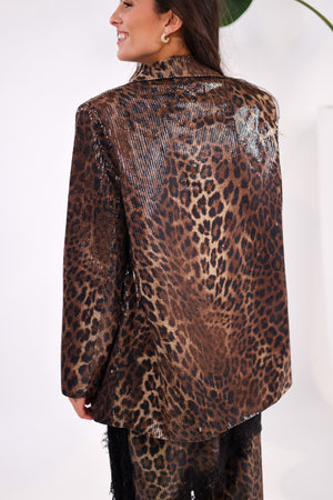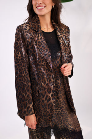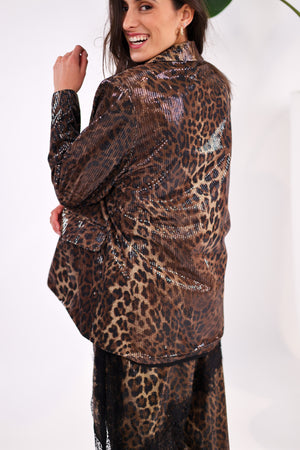 Blazer léopard à sequins – Coupe droite et allure glamour