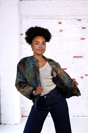 Un bombers original et coloré avec un motif façon plumes, qui apporte une touche d’audace et de modernité à vos looks.